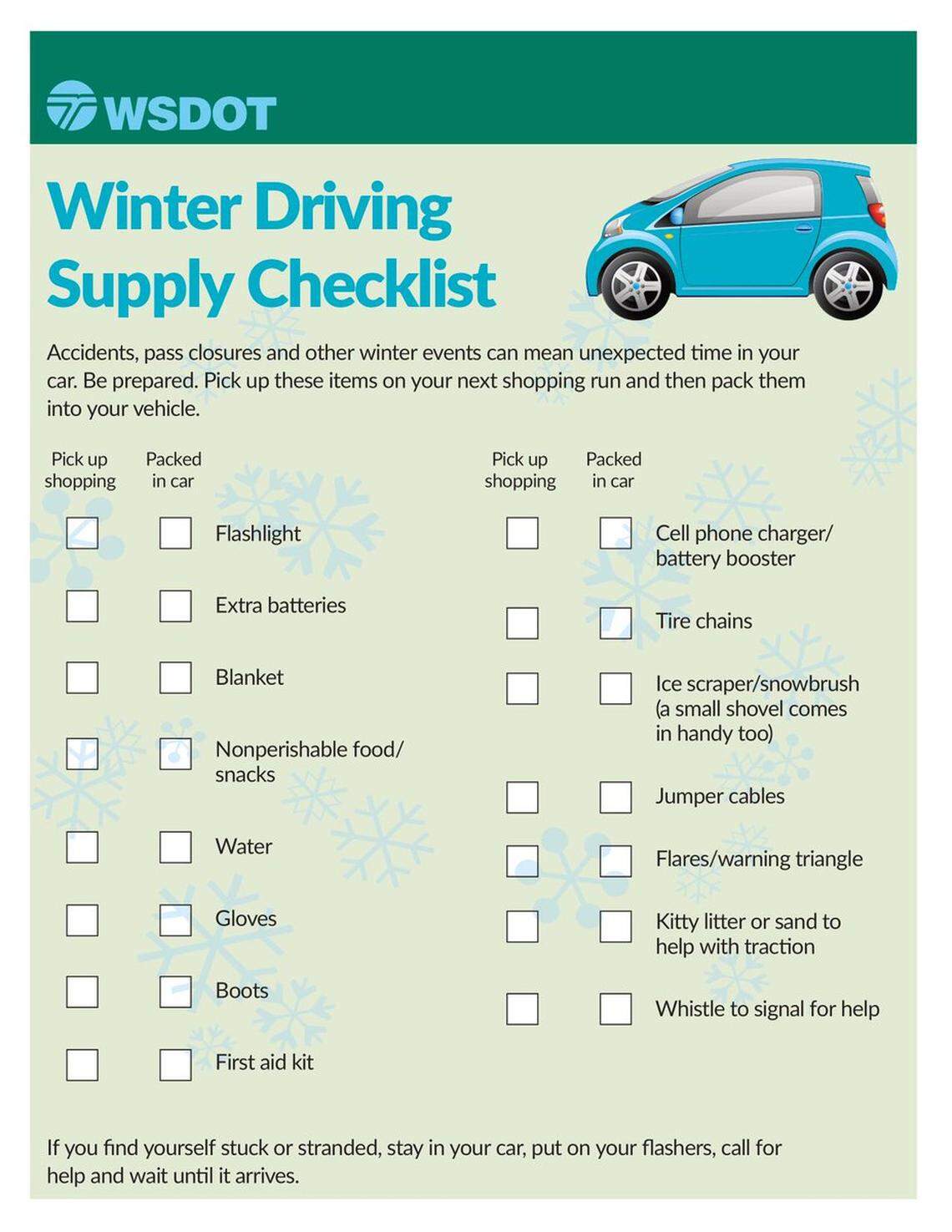 The Washington State Department of Transportation offers tips to drive safely in winter weather: