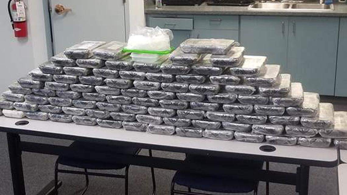 Under the mattress on the lower bunk, an additional 50 bundles of meth were found, along with 2.4 pounds of suspected heroin, thousands of 30 milligram Oxycodone pills, and a few grams of cocaine.