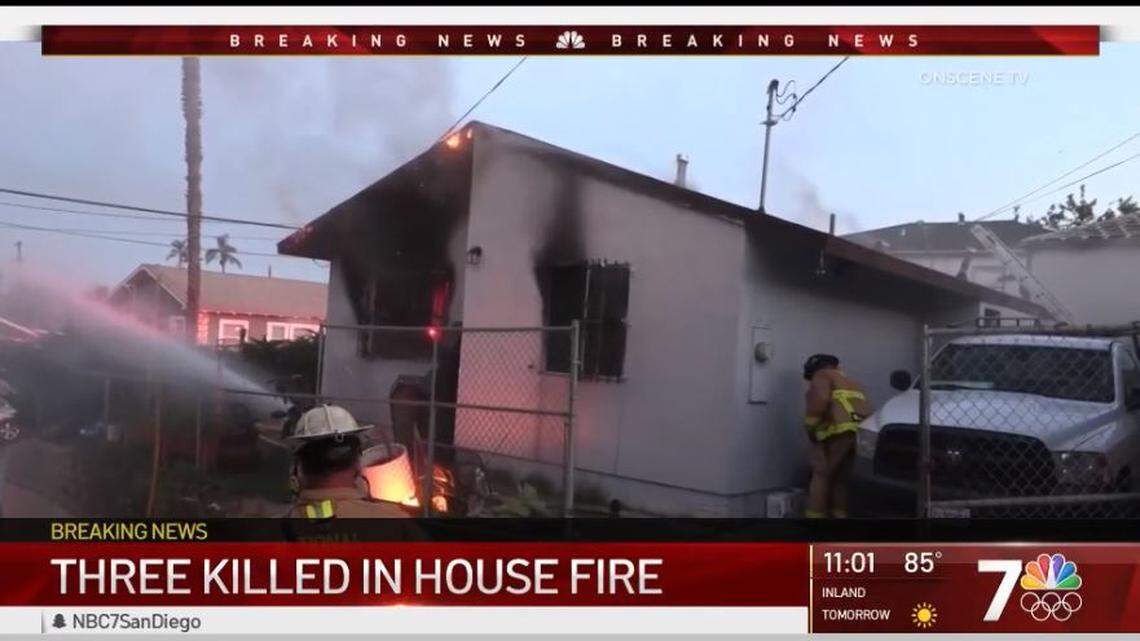 A suspicious house fire early Thursday in San Diego killed three people reportedly trapped inside by steel security bars on doors and windows, authorities say.