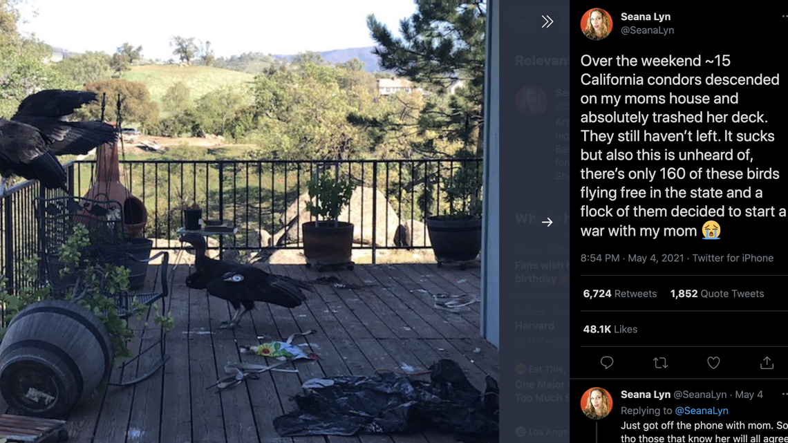 Flock of rare condors descends on California woman’s home — and wreaks havoc on her deck