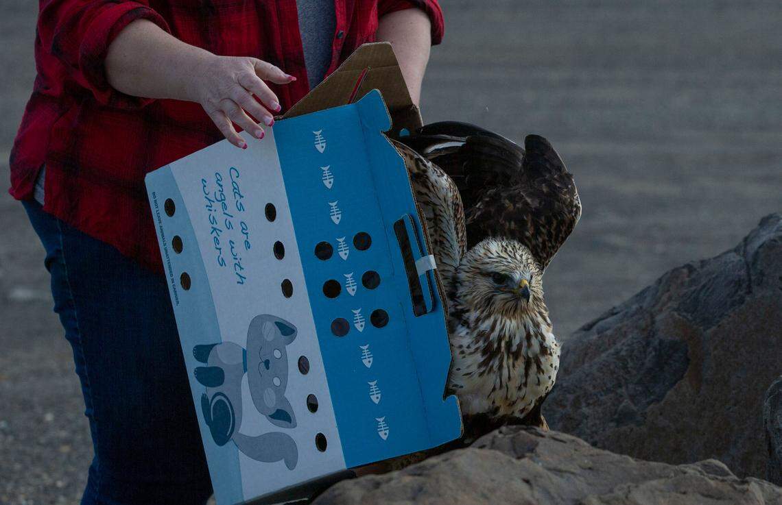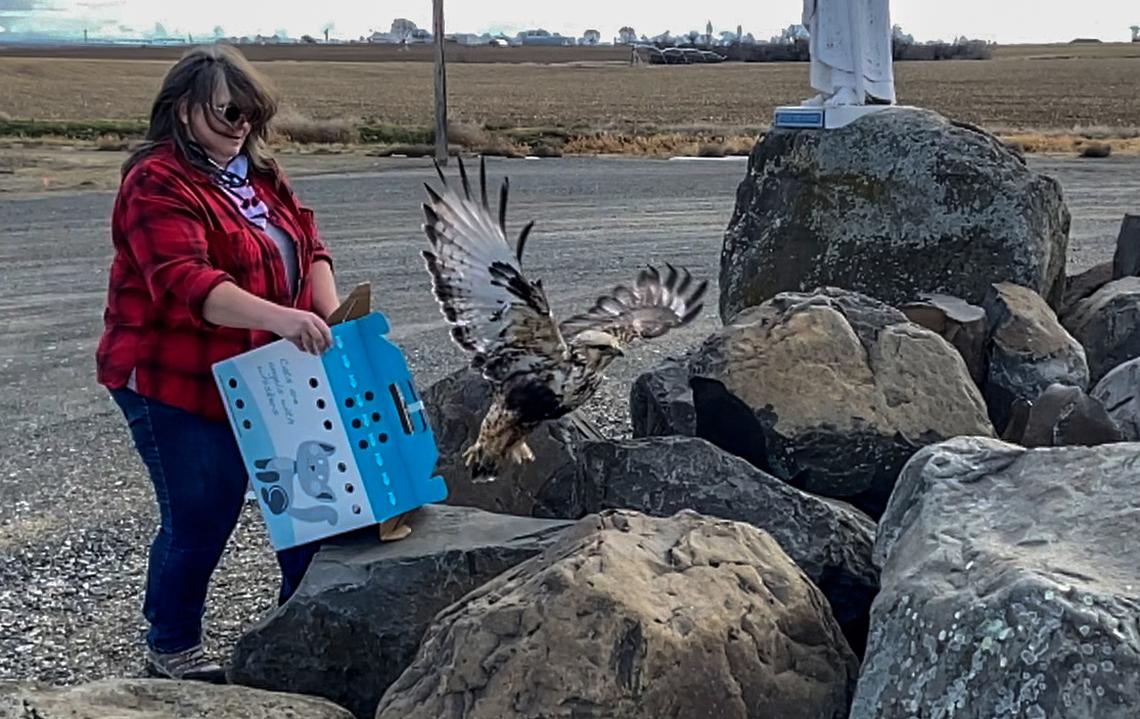 On Tuesday, she drove down to Umatilla and back up to Tri-Cities to release the bird just north of Pasco.
