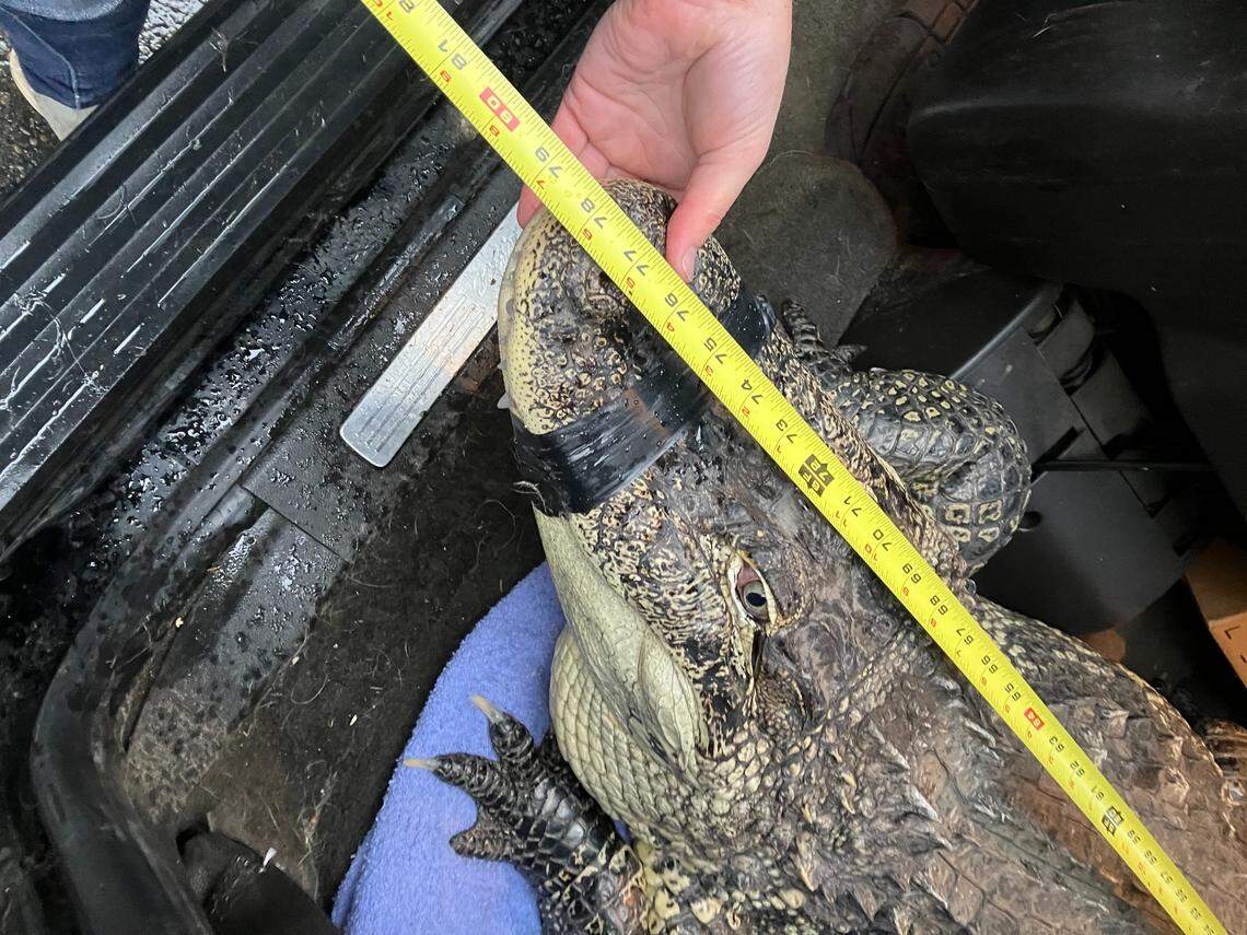 The animal control officers, with the assistance of some deputies, were able to wrangle the alligator.