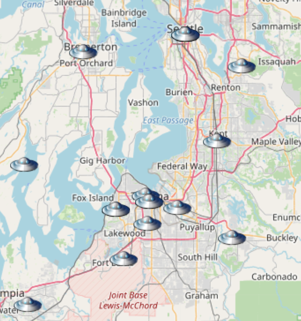 There have been countless sightings around Puget Sound, especially around the Tacoma region. Boise has also seen its fair share of sightings over the past year, and an alien encounter was reported in central Oregon on Dec. 31, 2021.